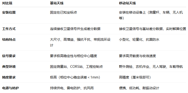 基站天线注重“稳定性与精度”,移动站天线强调“灵敏度与实用性”,两者共同构成RTK系统的精确定位基础。
